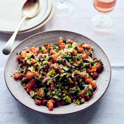 Bien qu'il soit traditionnellement servi avec du fromage de brebis ou de chèvre frais et doux, j'aime le remplacer par du labné. Le labné est essentiellement du yaourt égoutté et est une préparation très populaire au Moyen-Orient et en Arabie. Bien qu'il ne soit pas authentiquement maure, il se marie parfaitement avec cette fabuleuse salade.